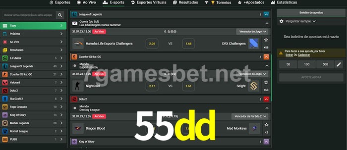 A aposta 55dd oferece aos jogadores a experiência mais conveniente de apostas em eSports!